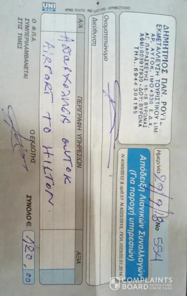 Three of us were asked to go to Hotel Hilton, Athens. We were asked to use 2-way taxi at our expense for going to hotel and coming back to airport next day for which we will bring the taxi bill and our amount will be refunded at the airport by M/s Goldair Handling. We told them that our luggage is large enough (6 suit cases and 3 hand-carries) that cannot be accommodated in a taxi, but nobody listened to us as there was chaos at the company's counter due to handling of large number of passengers.