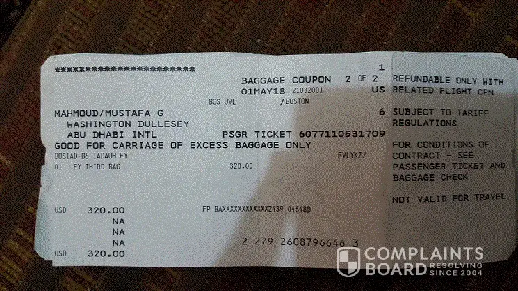 * 4 hours before scheduled departure time I went to check in my luggage and I was shocked again when I was informed that I had to pay $450 for excess luggage.I tried to explain that fact that I already paid for excess luggage (I presented my payment receipt) and that this was not my fault and I did not have to pay for the mistake of your staff in Boston. Unfortunately your Abu Dhabi staff rudely told to me to pay if I wanted to proceed with my flight, and that was a clear threat and taking advantage of a passenger who was in a foreign country with no affiliation to that place.