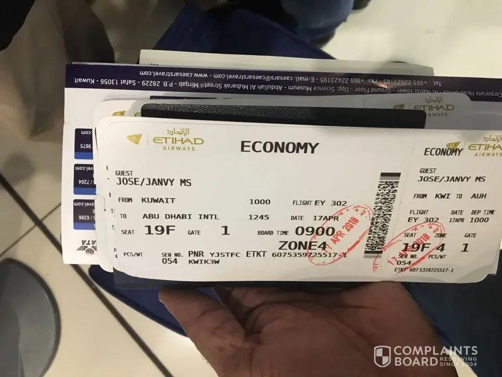It gave me so much disappointment and inconveniences. Because first, originally I was about to depart in Manila in flight EY 0423. But it was cancelled, and so my connecting flights were also affected. Second, I am an Overseas Filipino Worker, and I am leaving for work with a lot of documents. And due to my flight cancellations, those documents need to be changed also stating my new flight details. Your people in the airport wanted me to provide on my own my new Letter of Guarantee. Which is quite impossible on my part, because I'm at the airport already and I don't have any means of providing it. I have to make them realize it first before they helped or assisted me. And besides, it's your fault that I didn't get through my original flight. Third, when I reached my connecting flight with American Airlines, upon boarding, there's already a miscommunication when it comes to seat assignment. And when I thought I'm already settled in my assigned seat, all of a sudden the attendant asked me to leave the plane and said I will be boarding on the next scheduled flight. Not knowing, the reason behind, I was just obliged to leave and wait for the next flight. These are all the inconveniences that I experienced with my last flight in your airlines. Not to mention the long hours of layover. It's so important to me to have a very convenient voyage every time I am going back to work overseas because it's a hard work that I'm facing for the next months. And yet I have experienced this hard time already upon leaving.