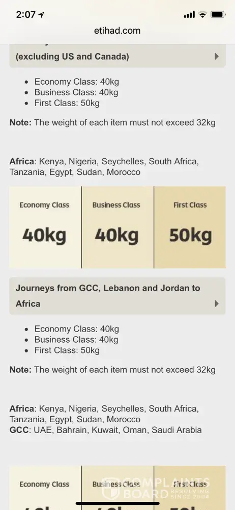 Airlines Etihad Airways Customer Service charge for excess luggage alleged by etihad