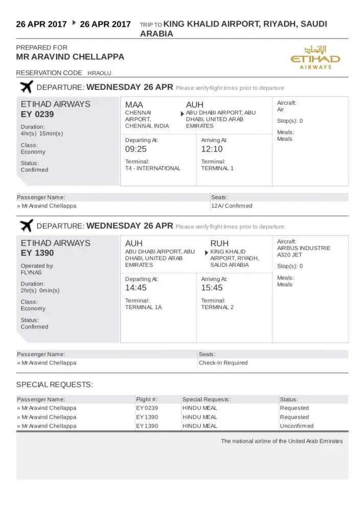 And there is no question of using your airline ever again in my life plus none of the people i can influence in my work and professional life never gonna fly with you. I need a fair compensation for all the losses i faced here in Abu Dhabi from my employer and back in India because of The National Airline of the United Arab Emirates refuse my CONFIRMED TICKET AND SEAT . I can provide the letter of expense and loss of my employer who given me because i delayed to do the task as said. I celled the consumer protection and right department and inquiring about the legal moves and actions i could take to solve the financial situation i have right now in my life because i choose to fly with The National Airline of the United Arab Emirates.