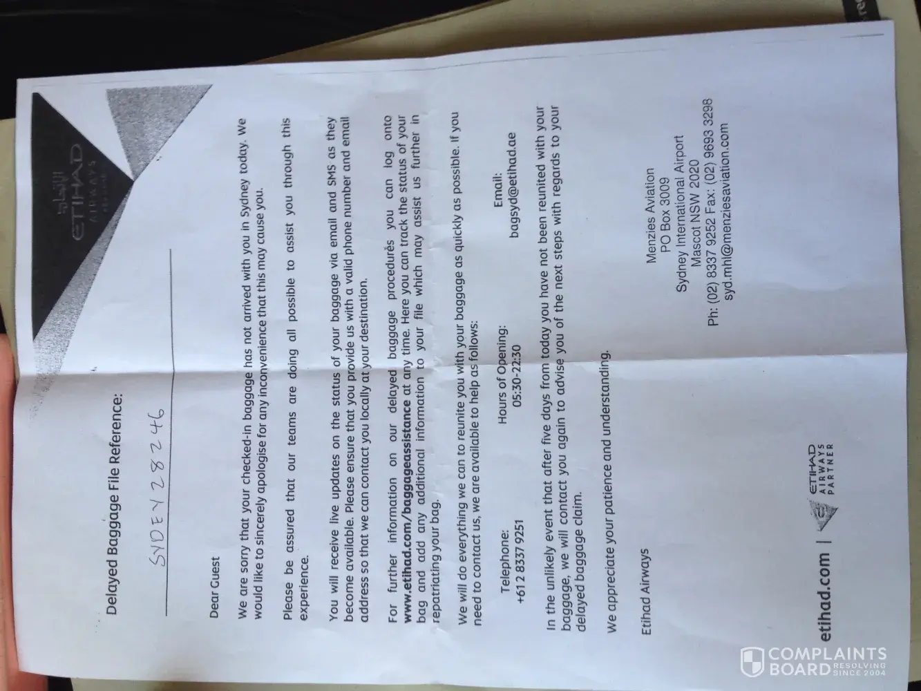 I cannot reach anyone in the airline, when I called their damaged baggage services, I was asked to leave a message and there was no opportunity to speak to an agent or customer service. I left my reference SYDEY28246 on the voicemail, my full name and number and even added a short description of the incident. The recording is max 30 seconds so I tried to be brief.