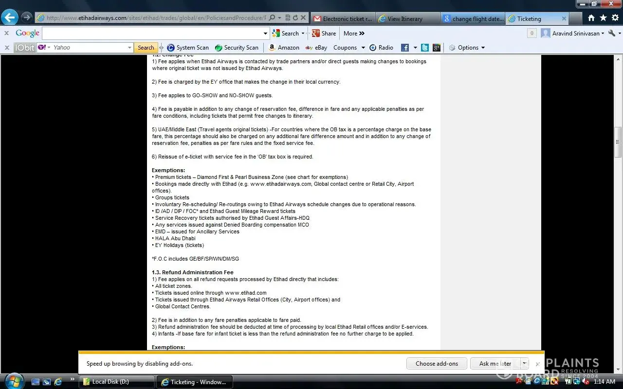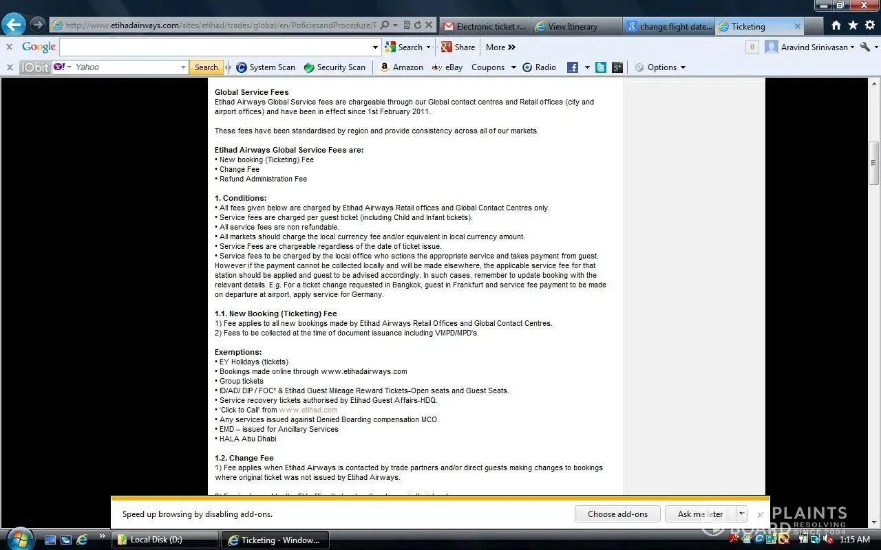 I was trying to book a ticket for my March 3rd journey through www.etihad.com.With the credit card problem coming back and forth on the page, i made a mistake of booking it on March 1st instead of March3rd. When i called up the call center, they initially said my change fee is 1200USD. When i asked them to recheck, they said its 210 USD, then they added some other taxes and said 230USD. When i went through the website, it is written that there is no change fee if i had booked through www.etihad.com, when i enquired about this, the call center girl told me that there is a mistake in the website and i have to pay the fare. I had to pay the fare and had to be on hold for a long time. She just puts me on hold, without informing itself, and i felt there is no concern for the customers. Very poor customer care. Very unsatisfied. So bad that they couldnt even follow what they had written on the website. The website itself is full of lies.BEWARE! Please see exemptions under point1.2 on the link.