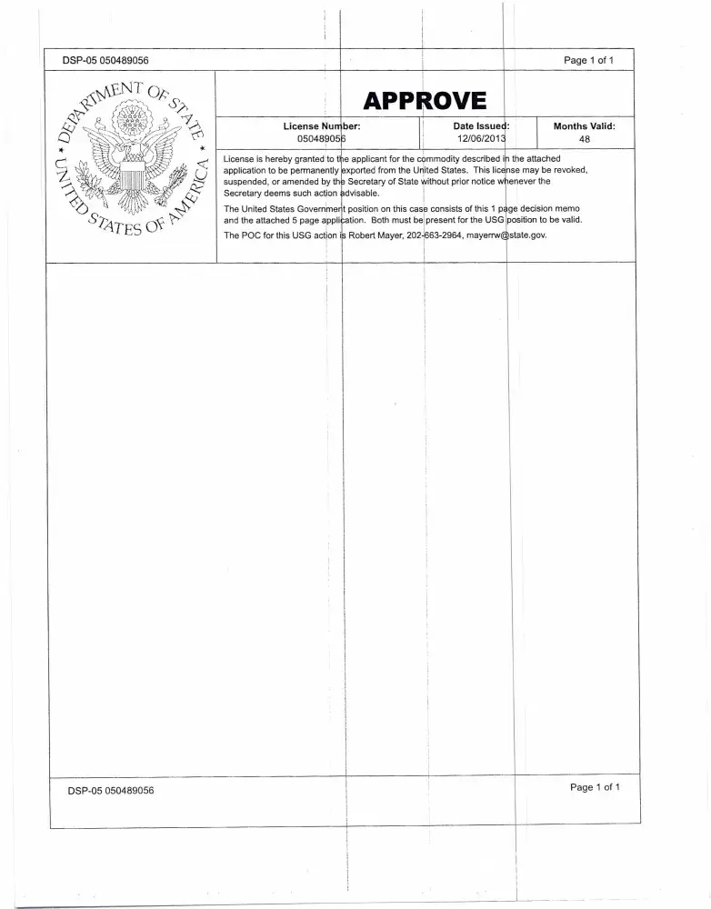 I have attached all the necessary documents with this e-mail i.e my flight plan, Ministry of Commerce Pakistan approval, US States Department Approval DSP-05 and receipt of the seller.