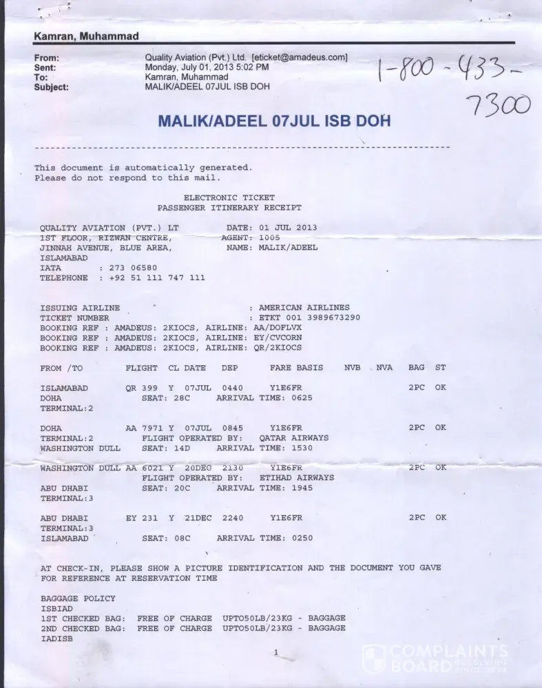 I sent several emails to Etihad asking for help and confirmation and I never got a reply.