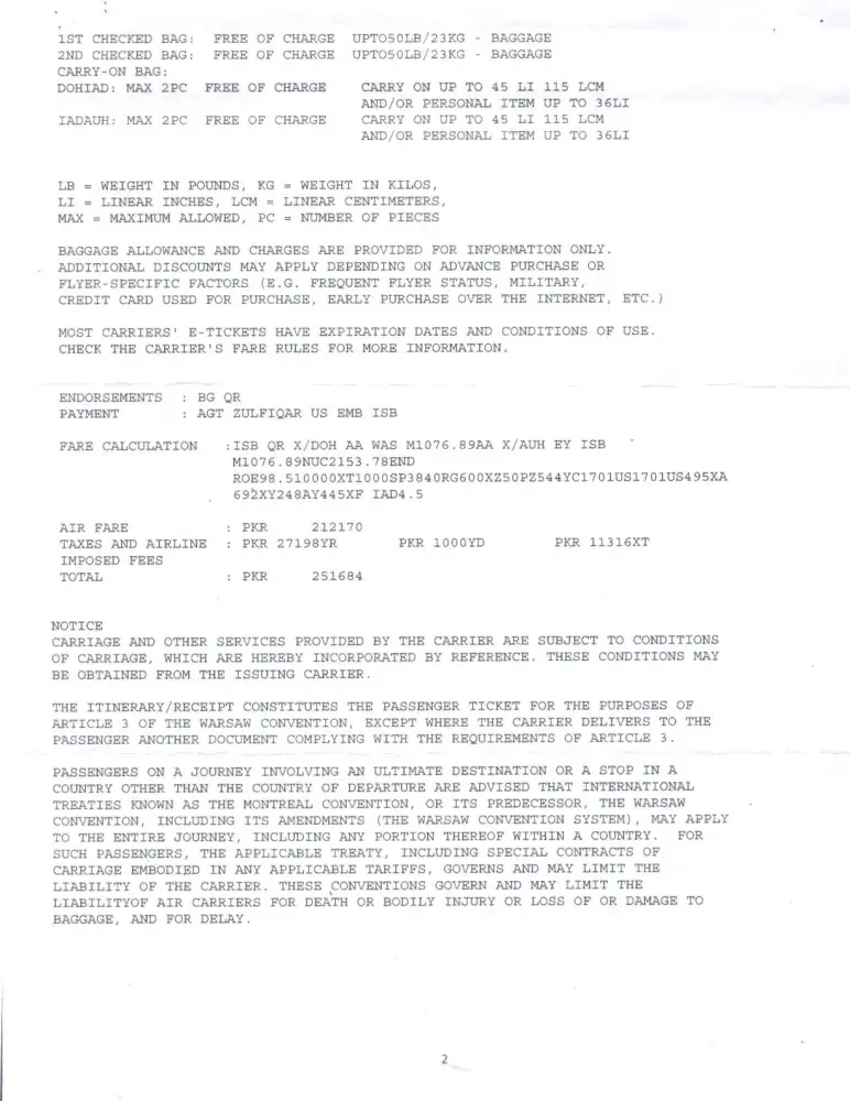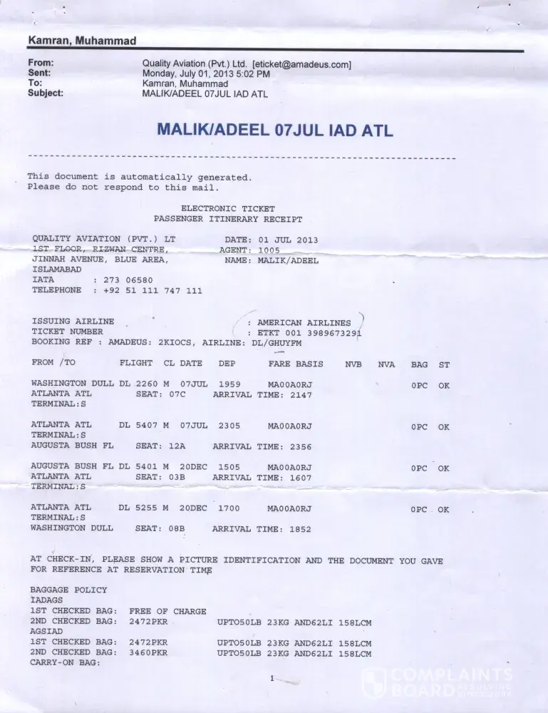On 31 July 2012 I bought an e-ticket Dublin-Delhi return (booking reference X4LUDP).