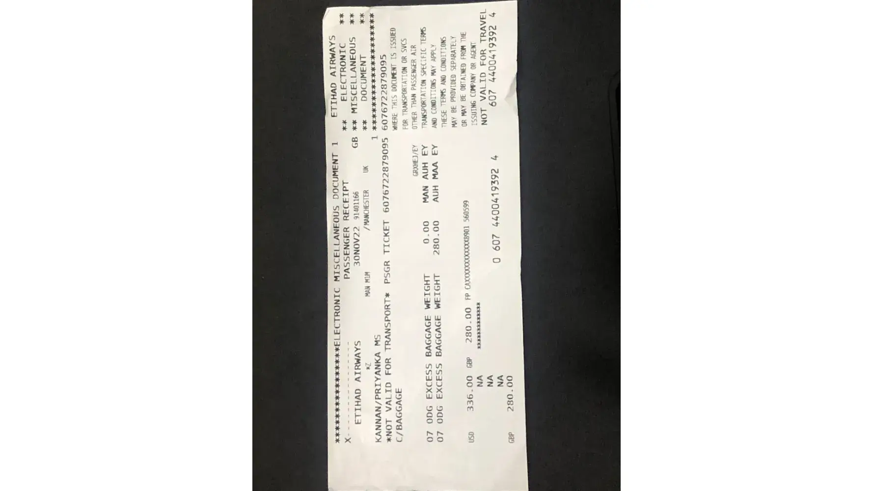 In this case ,she gave me only 2 options stating that I have to pay £280 for the extra baggage weight or not to proceed with my travel on 30th of November 2022 then unfortunately I paid £280(Receipt is attached) if not so I would have excluded my 9kgs 1 baggage but she dont allow me to do so. I would also like to add that I have travelled in Emirates, Qatar and Oman Airways none of them have treated me in this way when I get extra baggage in the check in desk this was my first experience with one of your colleague the way she used the intonations while speaking to my family was really she seem to be racist.