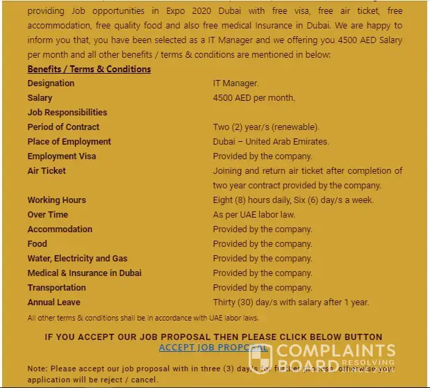 I received a job offer from etihad group of companies, for the post of IT Manager. Without Interview and they are offering me 4500AED. With all facilities provided by company.