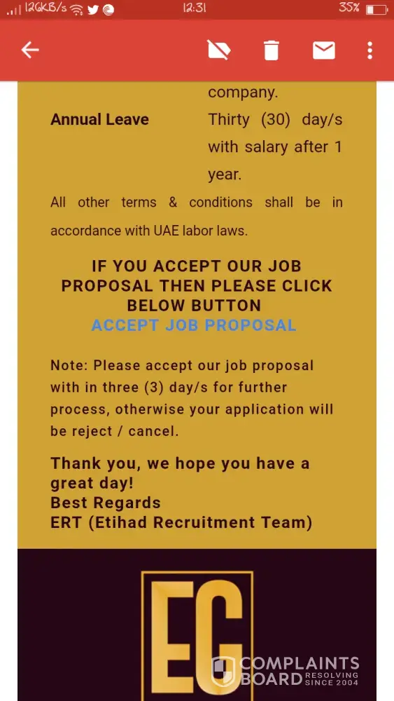 received job proposal via sms and email from etihad group of companies, is it real or fake?