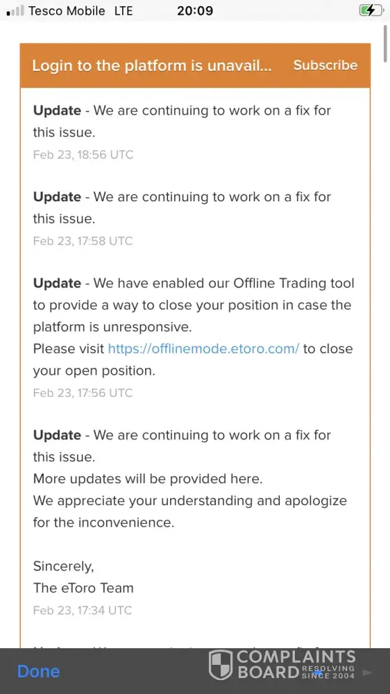Today was one of the day of those several time that i was unable to log in to etoro website to trade and check my portfolio, etc.. they claims that the site was under maintenance during a volatile trading day. This happend many times already in the past. After us market opened they shut their website again, i am unable to even send them a complaint as the website refuse to fo it. (See photo attached) I always been using their app from my mobile, so this time it's something new. They have an offline option to CLOSE my positions, but I don't see details about the current stock price, it seems that they want to make me to close them which I won't do as i know that i am in negative right now. I saw many their users complained in etoro's forum. Something very fishy here...