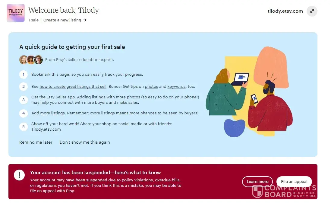 We just opened an Etsy shop on April *, 2020 after invested for our business and worked really hard to produce like 200 unique handcrafted jewelry in our studio. We took photos of the each products and listed each jewelry with at least 3-4 photos and clear descriptions. We offered free international expedited shipping for buyers to fast and secure deliver and we made 115 sales within 45 days with 15 high rating feedbacks from buyers. We haven't received any single case against our shop, no low rating feedback or buyer complaints in these 45 days. Etsy has been suspended our account on May , 2020 without sending us any single warning or explanation email ragarding this suspension. We immediately called Etsy to understanding this suspension. The Etsy worker which we have talked on phone was very kind person but he doesn't gave us any suspension reason. We have created a support request through Etsy and emailed them below message to Etsy Integrity Team. *** We have received a reply from Etsy Legal 4 days after than our email to Etsy Integrity Team. They are telling that they have suspended our account due to policy violations. Etsy claims also as "Our records show that your account shares sufficient information with an account whose privileges have been revoked for us to consider them related. As a result, we’ve terminated your account privileges as well." After received this email from Etsy Legal, we have contacted (called) with our virtual assistant in US and they confirmed they was working with a different Etsy shop owner and their account has been also suspended just couple of days before our suspension. As we mentioned above too, we were working with a virtual assistant for arranging our financements in the US until two months. They just signed in to our account to pay our first Etsy bill yesterday and our account has been suspended just in two minutes after she paid Etsy bill. We never asked to our virtual assistant if they were working with the different people to running their business on Etsy or not ! As it is understood our failure was just working with a virtual assistant. We never violeted any Etsy policy, not received any buyer complaint as well. We made huge investments to establish our jewelry studio, worked very hard to produce unique and handcrafted jewelry, spended months to do that all. But our account has been suspended for a reason that happens out of our control. We never thought that the virtual assistant was working with the other Esty shop owners and their accounts has been suspended due to policy violations. Now our account is still suspended. We are loosing business and time due to suspension because of device match with the others we never related. We are requesting to reviewing our account again. We are not related with any other accounts and we want to keep running our Etsy business. Sincerely yours