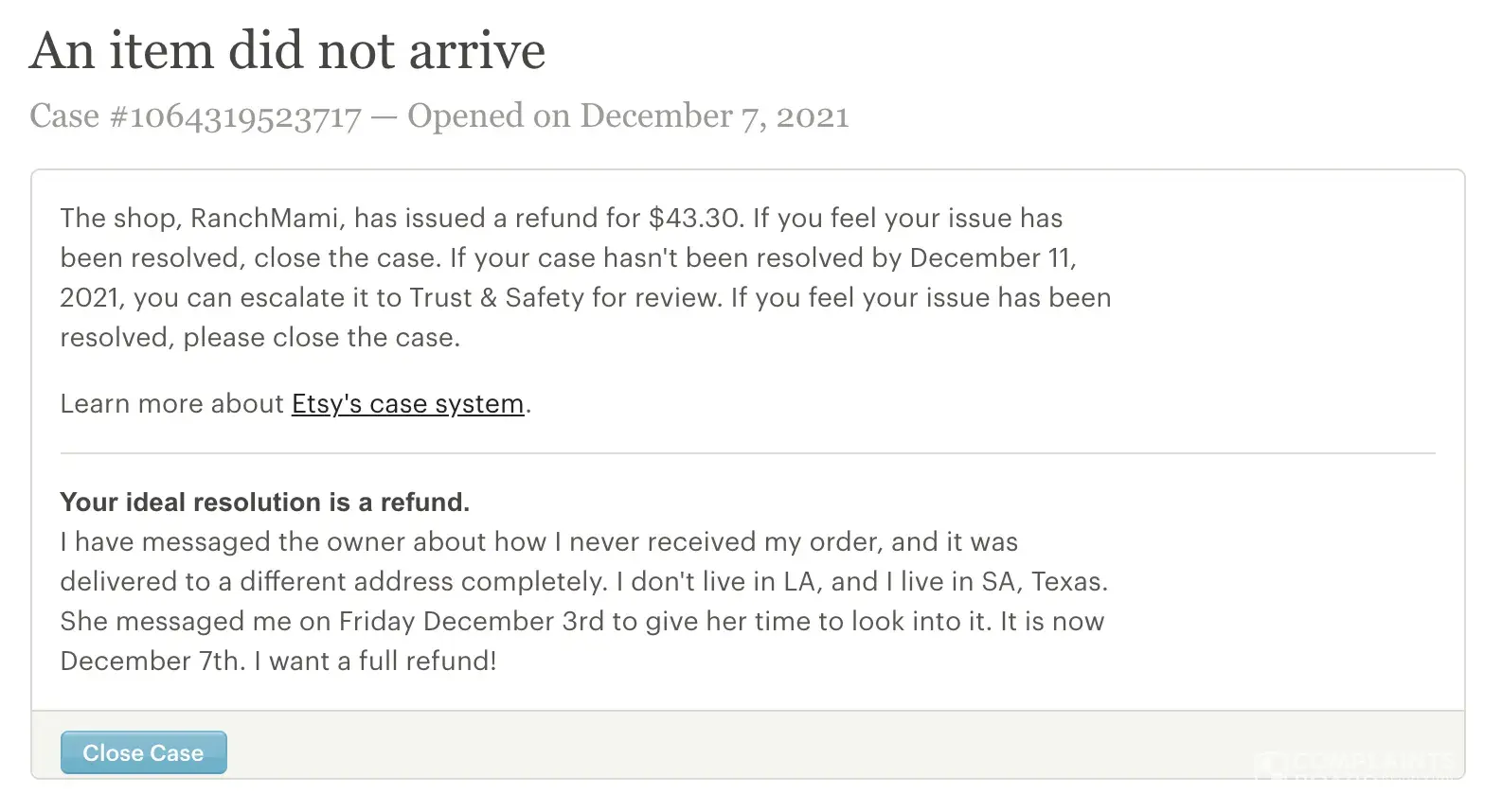 Etsy Product not received Transactie #[protected] - Case #[protected]