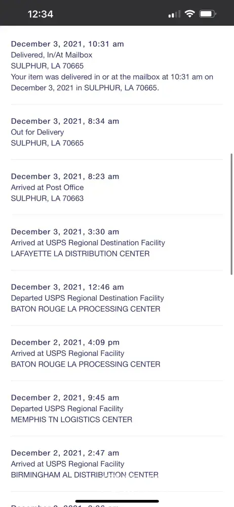I ordered the product on Dec 8th. I emailed her on the 16th asking for a status update. I received a request from Glenda on Dec 16th asking me to be patient and that she orders a USPS tracking slip (Dec 8th) but assured me she mailed it on Dec 14th. Even though the product is not available, this is her way of keeping Etsy from suspending her account. (see attached phone pic highlighting this) I responded with an offer to drive to Houston for a personal pickup or pay the additional fees for over nighting the product as I needed it by Dec 24th. The gifts were to be added to the Christmas outing for the Dallas Cowboys game in Dallas on Dec 26th. She never responded.