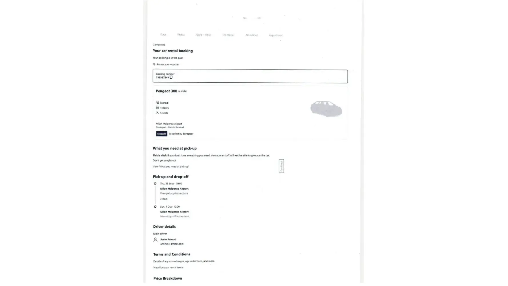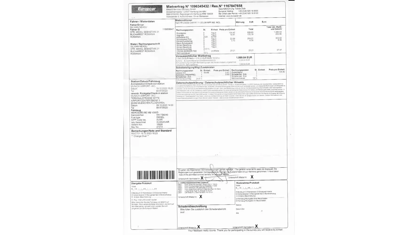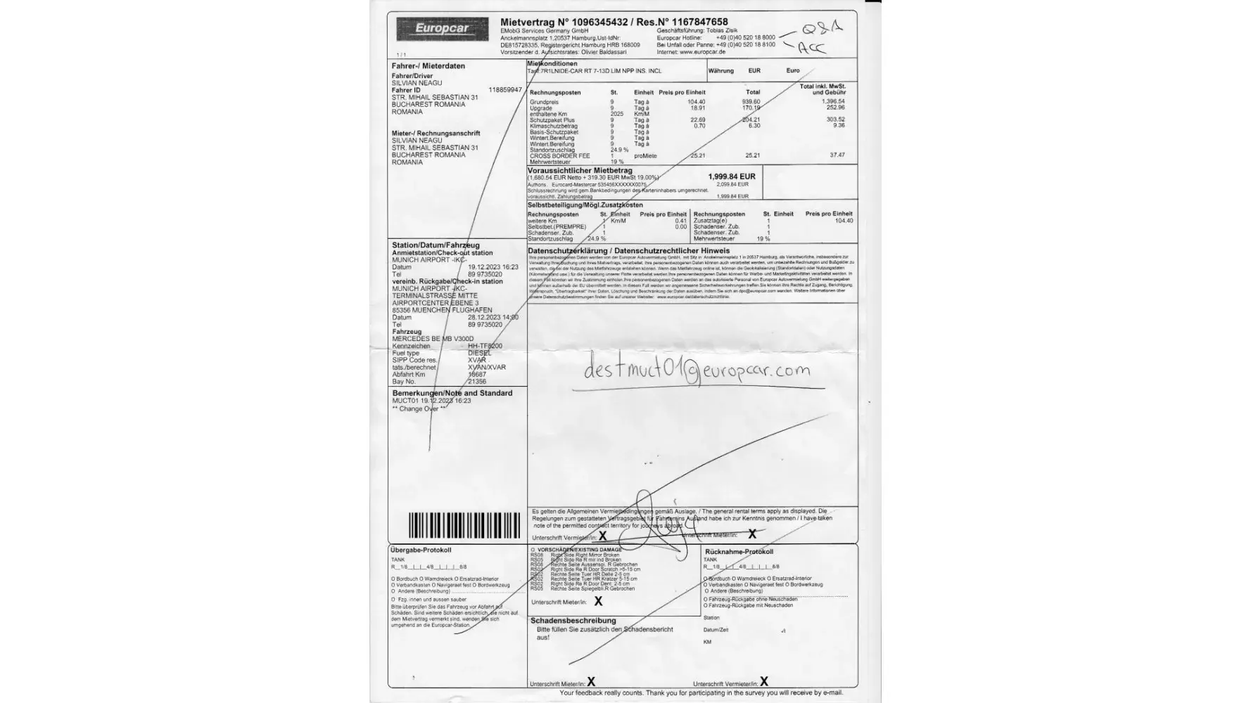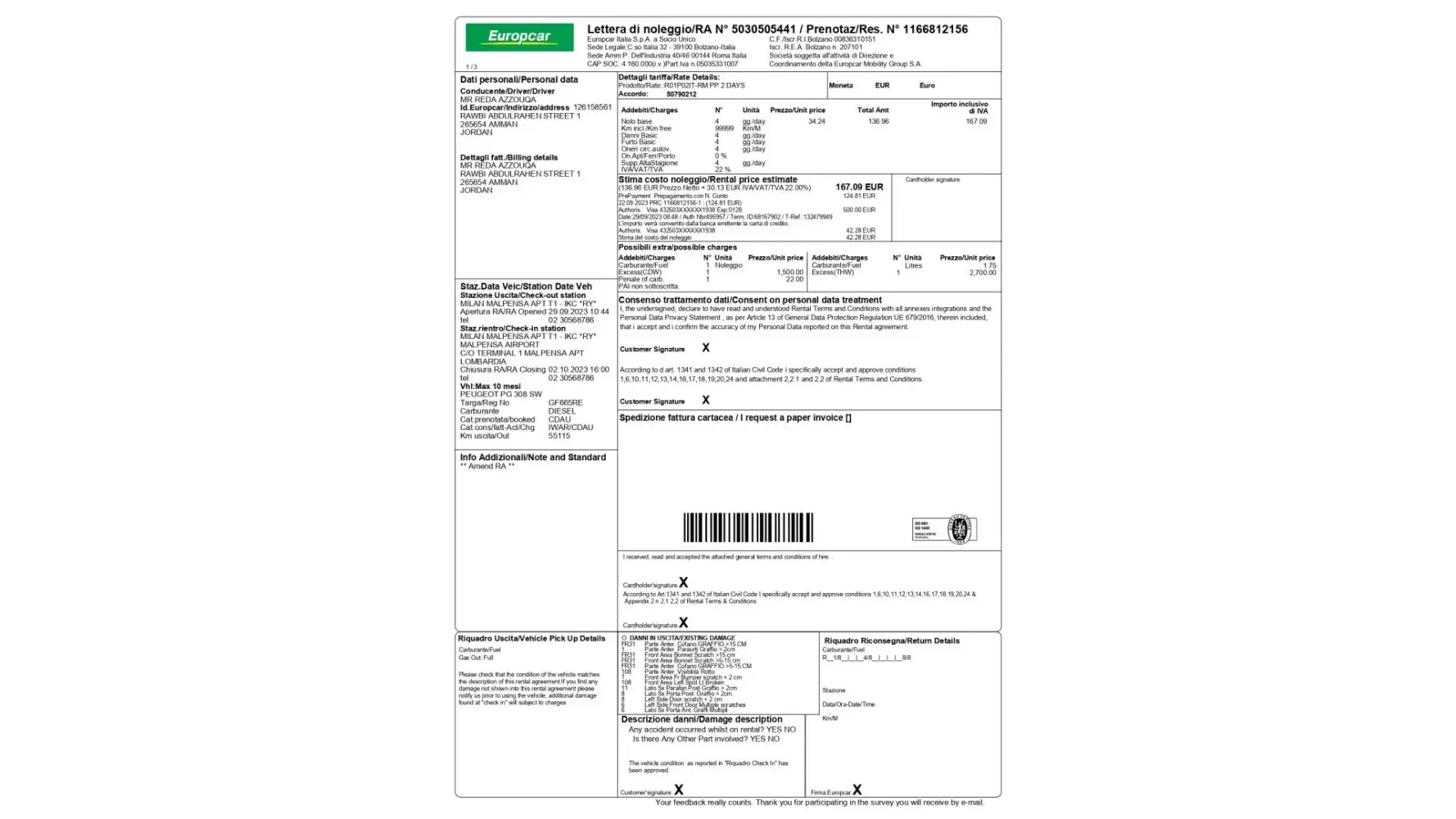 Europcar rental agreement - [protected]
