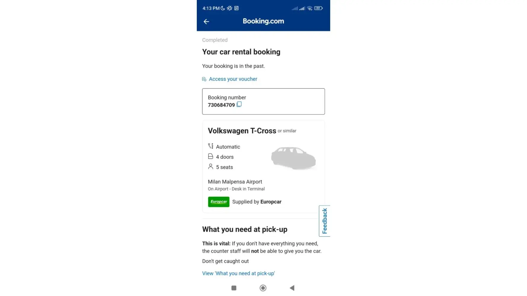 On 2 August, I received a call from the roadside assistance asking me where the car was! I explained to him that I told Europcar and roadside assistance where the car was located on multiple occasions. Clearly roadside assistance did not pick up the car for 5 days.