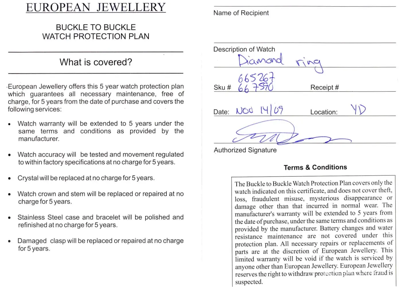 I also have terrible experience with European jewelry at Yorkdale then eaton center. I bought a diamond solitaire. Sales lady told me that I can upgrade my diamond any time within 2 years time frame and at higher price. She explained me about higher price by giving me an example that if I had bought a ring for $3500 and if upgrading then it has to be for $4000. I agreed.