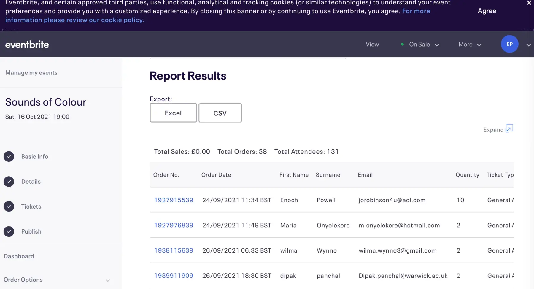 Ticket number. https://www.eventbrite.co.uk/reports?eid=166095625487&rid=h&filterby=all, [protected]
