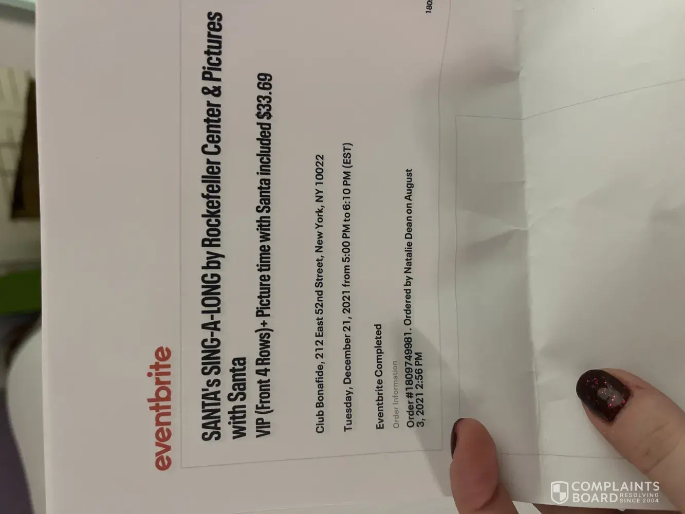 Booked Santa sing along in august, Attended Santa sing along this evening, Eventbrite tickets said the event was on 52nd street so we walked there. No sign of an event so we Looked on Eventbrite to find out it was in theatre row. This was 1.6 miles from where the ticket stated it was, $20 in a taxi back to the correct venue and my kids missed 35 minutes of the show.