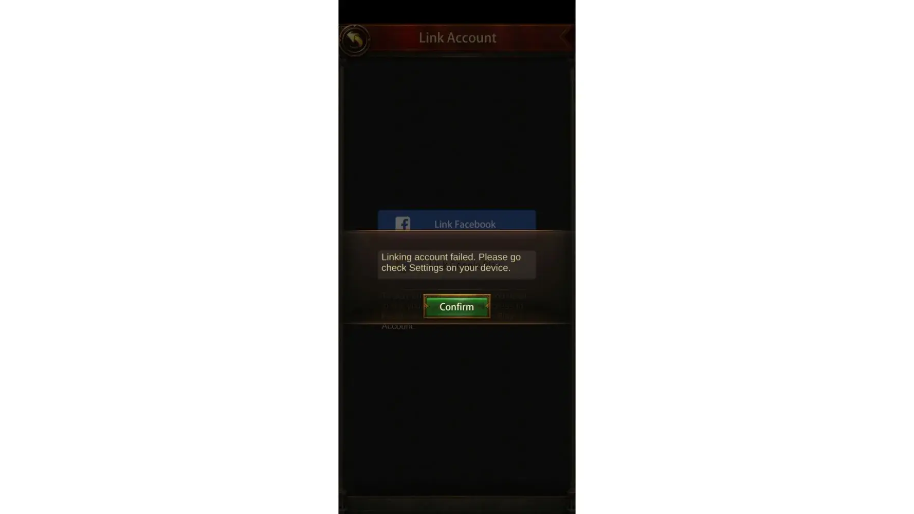 Desired outcome: Access to game. So I can link game to alternate Facebook account and switch between accounts.