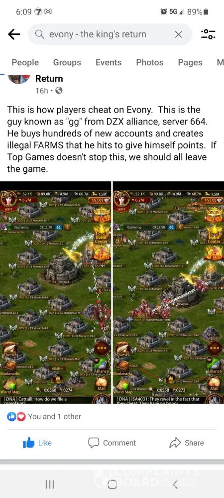 Cheating server 664, and evony does nothing about it.