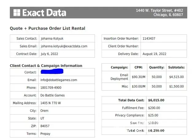 My organization purchased the business mailing lists from the company Exact Data Consumer Base. The rep was useful and provided all warranties and told to contact if we had any problems. Yes, we had problems, because these lists were unsecure and we couldn’t send the info. So everything was opposite and no security at all. These people are scammers and...