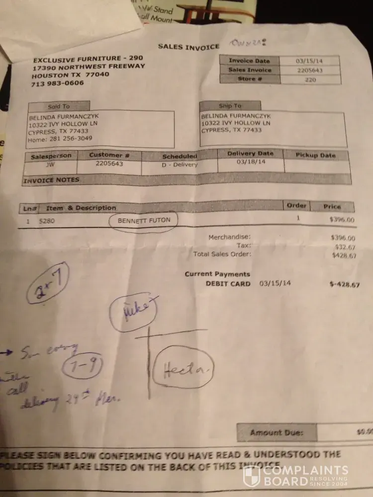 I HATE exclusive furniture they have the worst customer service and the most unprofessional staff I have ever witnessed in my life. They are rude and disrespectful. I wouldn't send a homeless dog to this company. WORST COMPANY IN HOUSTON!