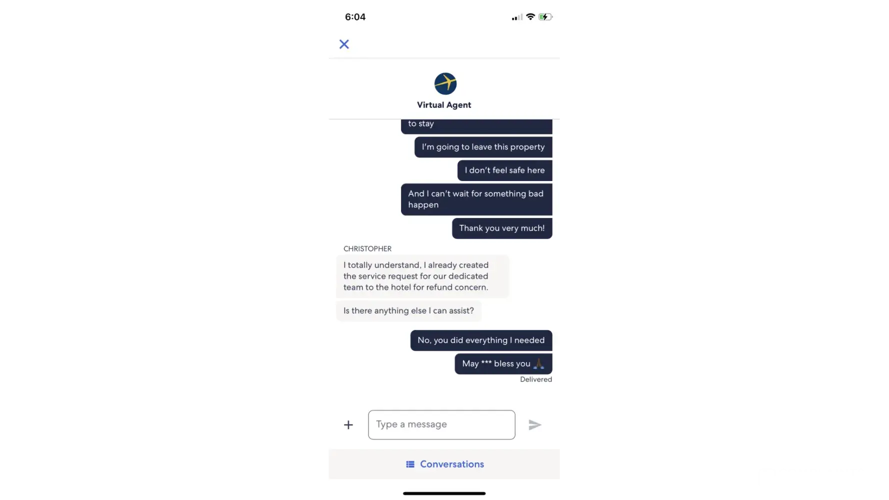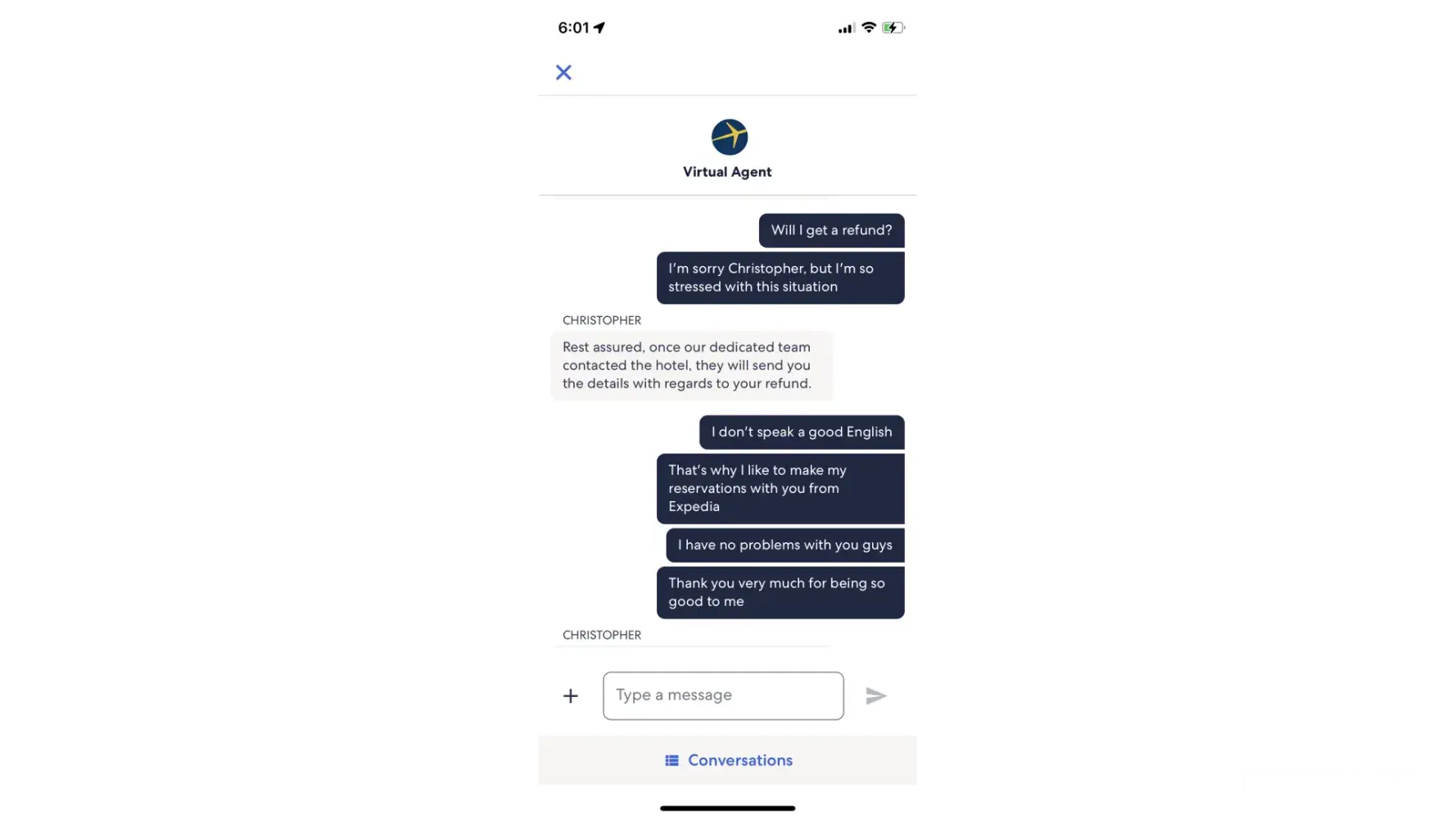 I had a lot of pain caused by a stiff neck. That was very stressful because the Expedia guy told me that I would get my refund (I have prints of that) and I woke up on Sunday morning, July 30th, 2022 with an e-mail saying that I wouldn't get a refund for something I didn’t use!