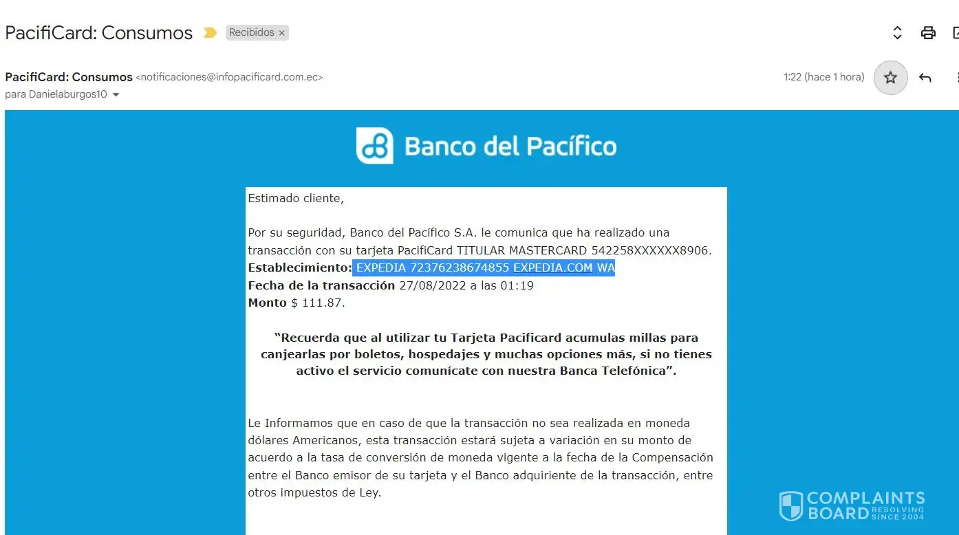 Receive a transaction to my card expedia [protected] expedia.com wa