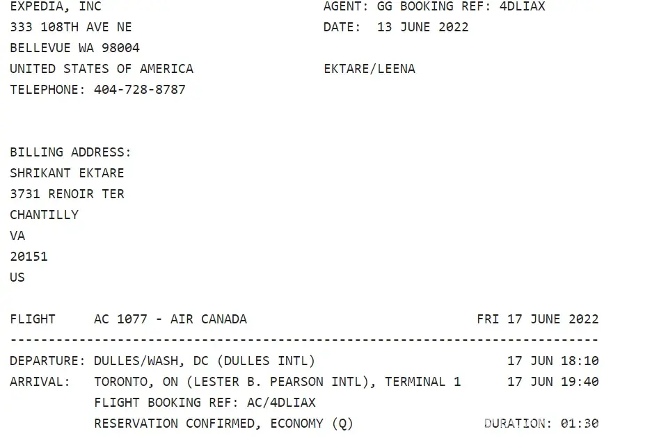 We made reservations for Canada Trip in March 2022. Air travel was also confirmed. On June 13th I even got confirmation of the Air Travel Itinerary email from Expedia. I also saw my confirmed itinerary including Seat Numbers on Air Canada's official site.