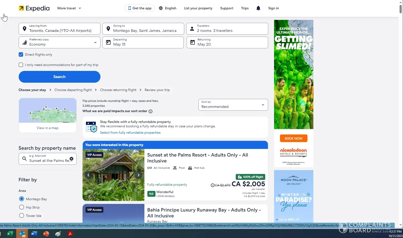 Dear Complaint Team, I hope this email finds you well. I am writing to bring to your attention an issue I encountered with a recent booking through the Expedia platform. On October 31st, I booked a reservation at "Sunset for the Palm resort" (Montego Bay, Jamaica) based on the information provided on Expedia's website. The price advertised for extended...
