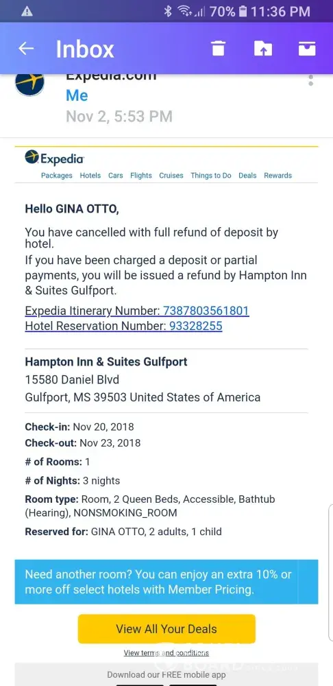 We expect at minimum refunded for Oct 25 through 30 as the Hotel had no rooms available. This is fraud and just wrong.