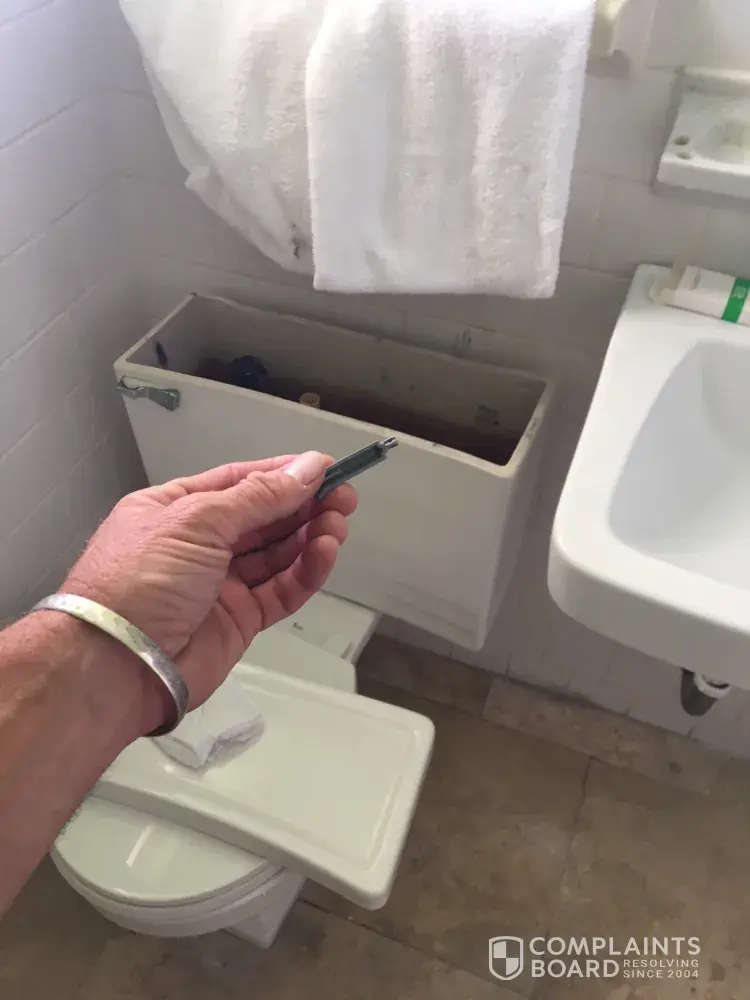 • Within minutes the Toilet overflowed sending filth all over. See picture of broken toilet attached.