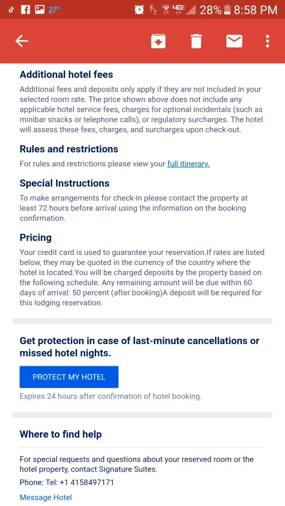 I've requested a our room charged many time but Expedia not give to us. I'm trying to contact them, but their customer service representatives are a bunch of idiots who don't even read emails and just copy/paste template answers.
