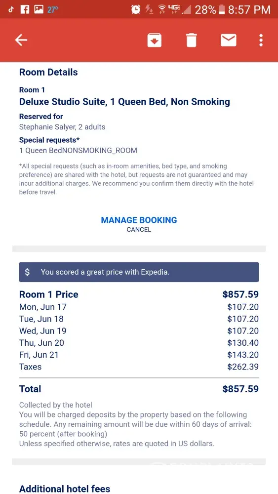 I booked a room through Expedia for my convention in Las Vegas June 17-22 2019! Now the price I was given has increased by $50+ a night and a third party wants $500+ up front!