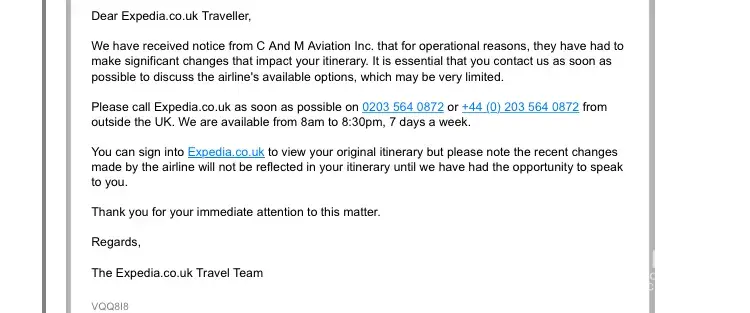 A simple solution would be for Expedia to reinstate our flights but they've did due to their policies it's out of their control?