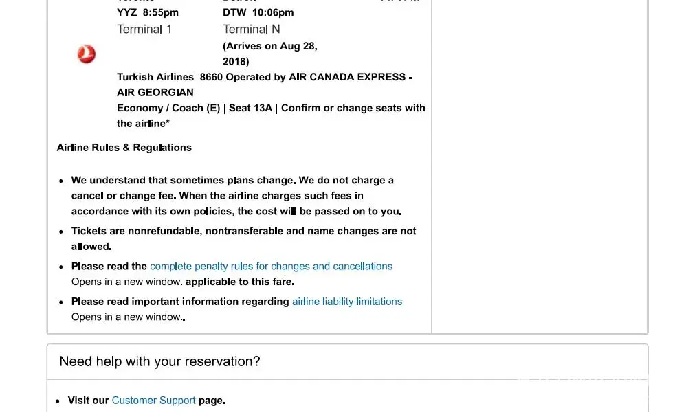 The airline company cancelled the flight and Expedia didn't told us on time so now our family is stucked in Turkey and Expedia is not helping us with other flight.