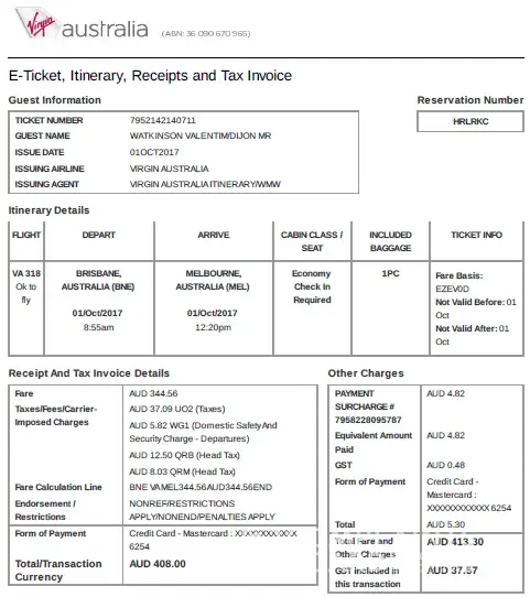 At that time in Brisbane, I could not get hold of Expedia, so was forced to book the next available flight from Brisbane airport to ensure I could continue with my travel plans. The next available flight happened to be another Virgin flight, which was at 08:55. The cost of this was £241.80.