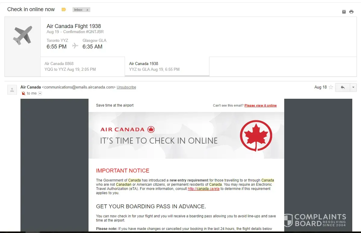 Expedia's failure to inform me of the introduction of the eTA, and its failure/refusal to provide any followup after initial booking - including any form of check-in reminder, is directly responsible for my situation.