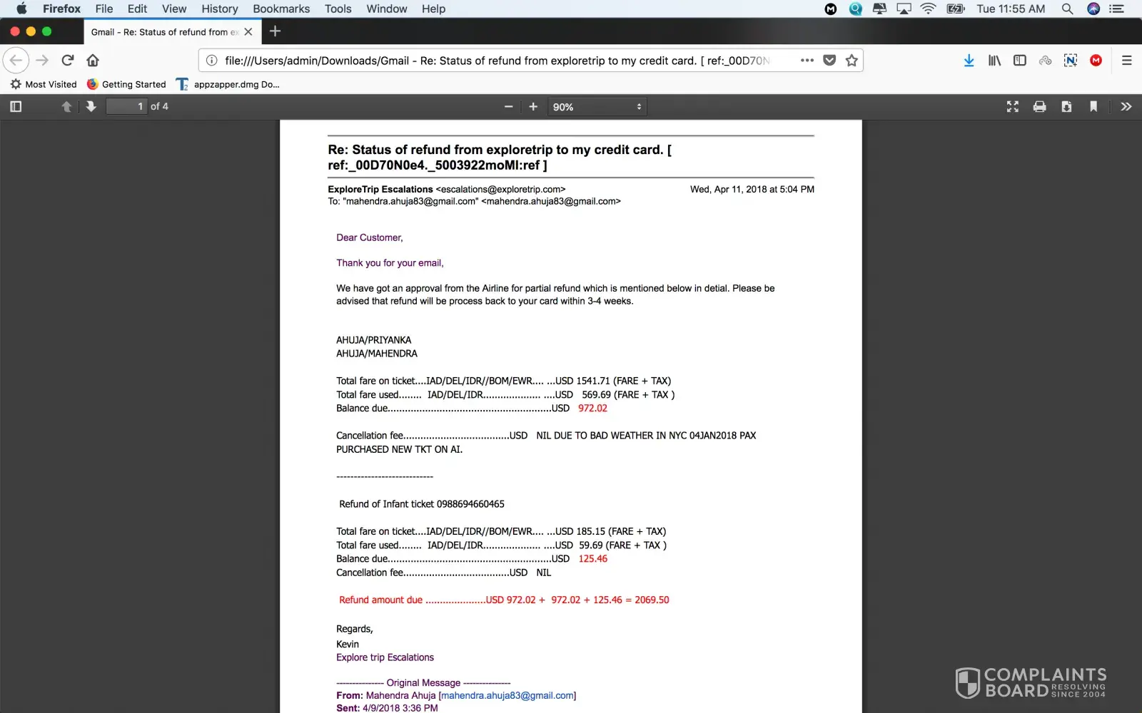 The airline meanwhile confirmed that Exploretrip customer support never made a request for the refund.