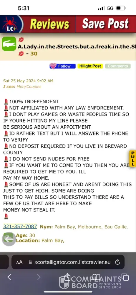 At the Melbourne west 192 location they have a known prostitute call service going on room 212 Kayla Barker she’s high traffic in and out she’s on many escorts sites such as list crawler her numbers used are [protected] and [protected] it’s very appalling that this is going on at such an establishment and know one knows or maybe it’s a pay to play over there either way room has a very bad aroma they are scary and I felt very unsafe and almost didn’t want to come out. This is mind blowing this is going on here at a reputable chain location someone needs to do something