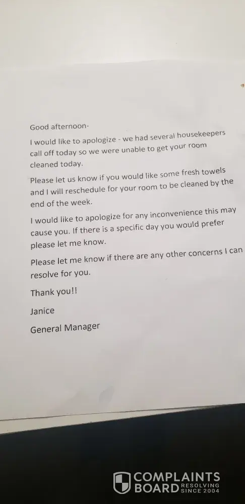 I've been an extended stay guest here for 6 months, waiting to relocate. There have bern several issues since management changed in May. My room is usually refreshed on Thursday's, however this week it was not. I was told they were short-staffed and my room would be cleaned on Friday. I called from my office on Friday afternoon and spoke to the manager on...