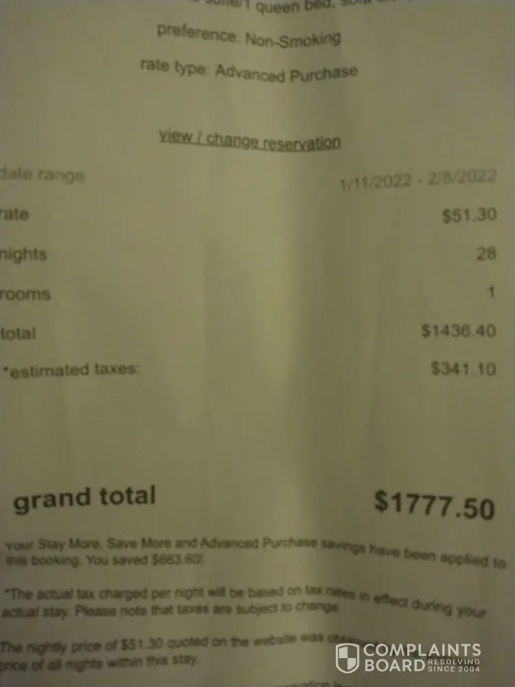 Unable to cancel a reservation but charged for $1400 as if I stayed.