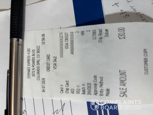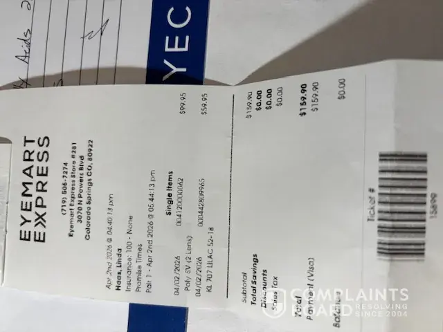 ON 4/2/26 i ordered glasses in person,received a text when they were ready. Went in on 4/6/26 to pickup & I tried them on and it was the wrong prescription.The worker said they would remake them be ready later that day. I went into the store on 04/7 to pickup but she said i owed another $#0 to get the glasses remade so I gladly paid.I asked about sunglasses but said I would purchase later. Woman went full on "karen mode,screaming, yelling "get out of my store you are never allowed in my store again we will mail you your glasses". I am a disabled senior and was horrivied and in tears. I don't have glasses and you have kept my money totaling $189.90 I WANT A REFUND NOW.