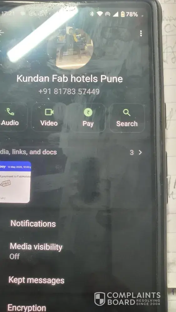 In conclusion, I would like to warn anyone who is considering booking with FabHotels to be very cautious. It is essential to double-check the hotel's affiliation with FabHotels before making any payments. I hope that my experience will serve as a warning to others and prevent them from going through the same ordeal.