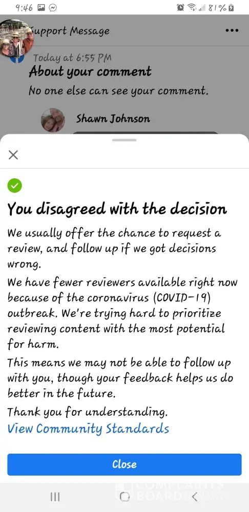 I've had a Facebook account for well over 10 years and never had any problems until they chose to censor my private conversations. I have never posted anything in a public forum all of my posts were private and only to my friends. They have suspended me multiple times and now have disabled my account allowing me the ability to have a review but I have absolutely no idea what the violating posts were? I never signed up for a FB app and have only used the site from the beginning by logging into website, I don't even know if there is a contract that I agreed to and I would never agree to allow them to block communications to my personal friends. They have violated my 1st amendment rights and have played judge and jury in condemning me without allowing me a single word in my defense and as I said they won't even let me know why I was disabled? If there is any kind of class action lawsuit against their Marxist actions then I would like to join.