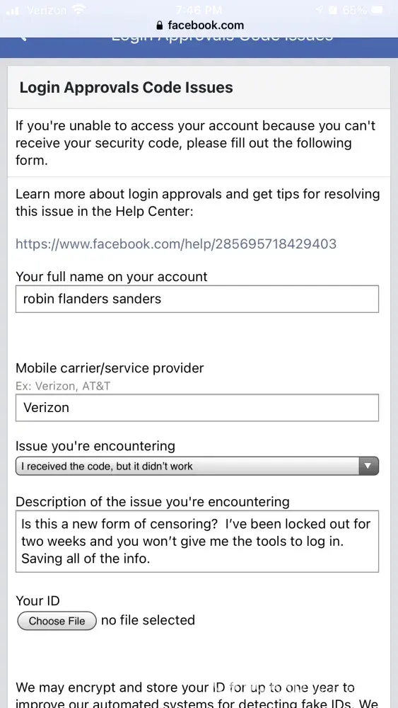 I have 11 years worth of pictures, friends and info on the account for Robin Flanders Sanders.