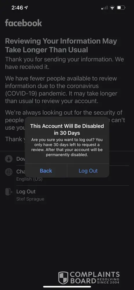 Desired outcome: Facebook to apologize and my account restriction lifted