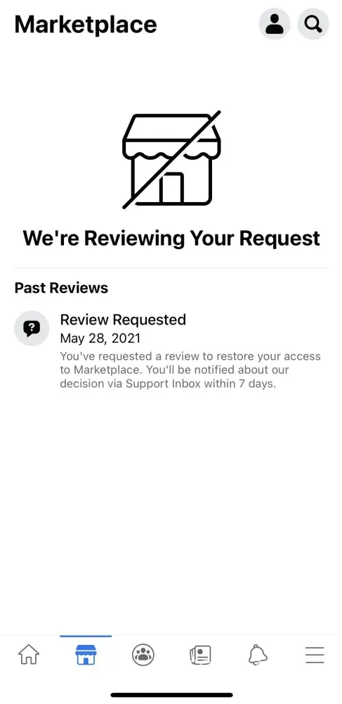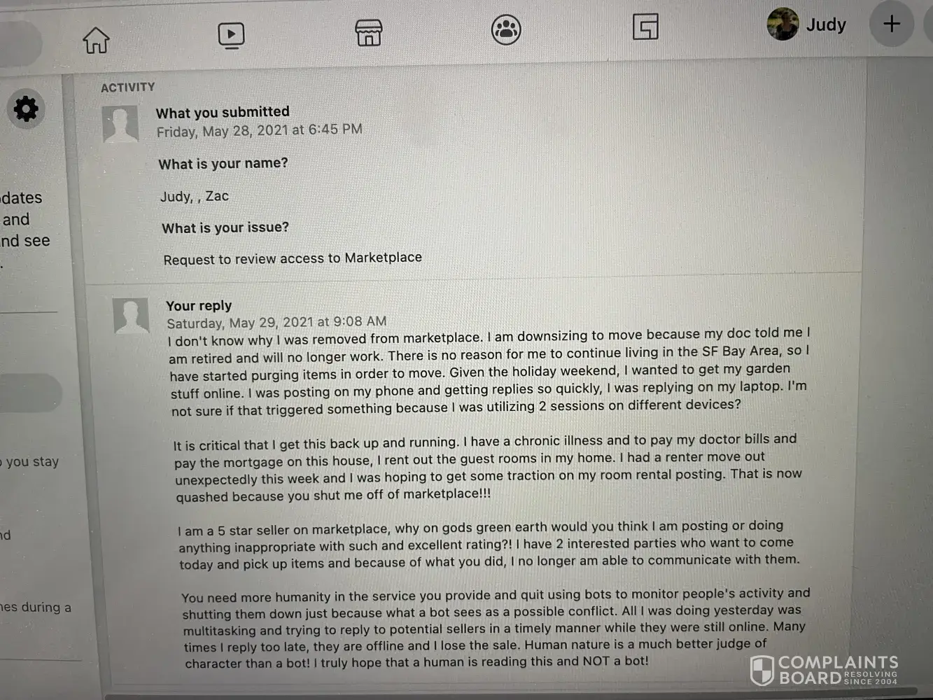 May 28, 2021 after posting in Marketplace I was cut off. What is so offensive about selling patio & garden items?! I'm a 5 star rated seller! Logged an issue w/support. My computer browser says I will get an answer in 24 hrs, their mobile app it states w/in 7 days. Numerous messages sent to support & nothing. It is now over 2 wks with ZERO response