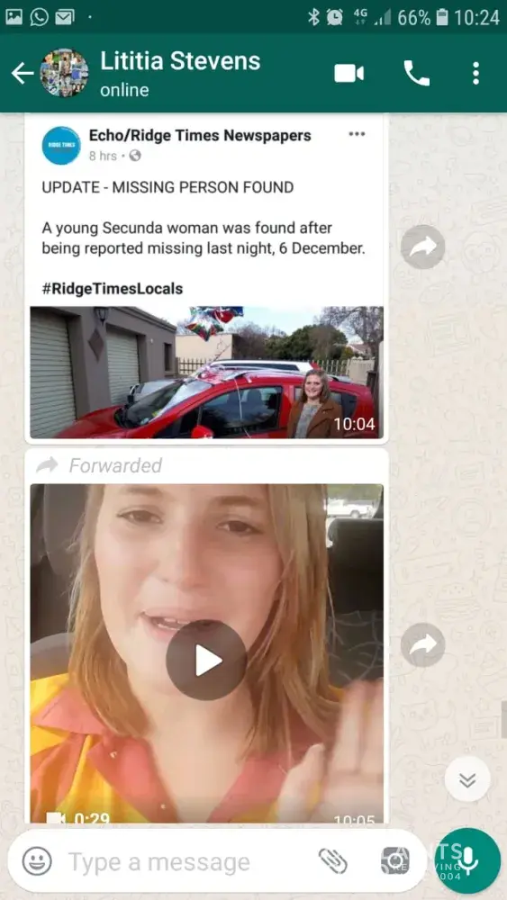 video posted from my daughter that "ran away".
