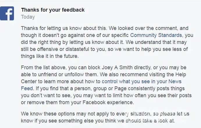 If you wondering yeah I have a crap ton of screenshots over the years proving facebooks stupidity. Some are provided but I have way more than this. They are just in a pile of other screenshots and are hard to find.